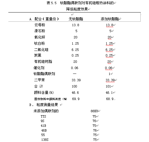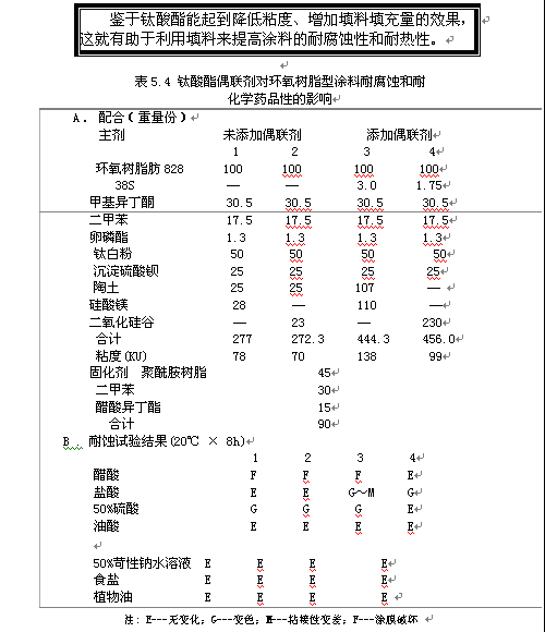 表5.1 對(duì)于不同的樹(shù)脂和填料最適用的鈦酸酯偶聯(lián)劑的相應(yīng)品種及其效果